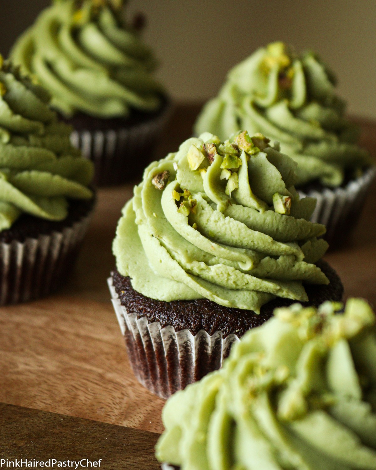 Light, chocolate buns topped with a creamy, smooth nutty pistachio whipped ganache.