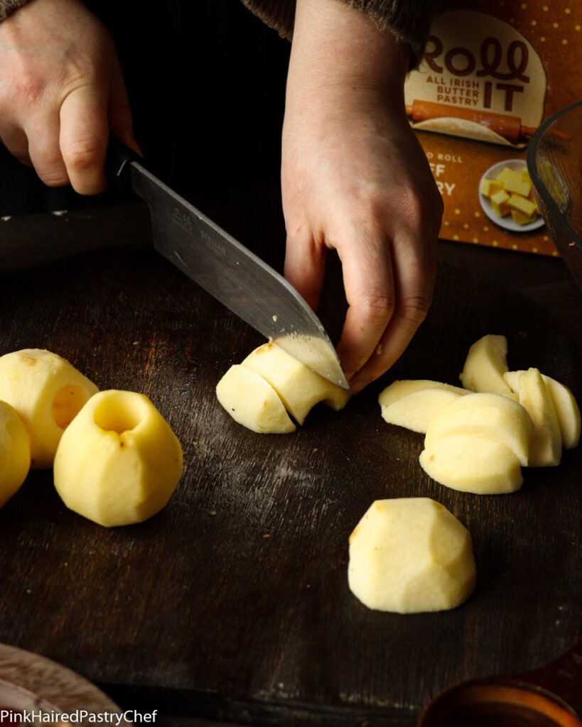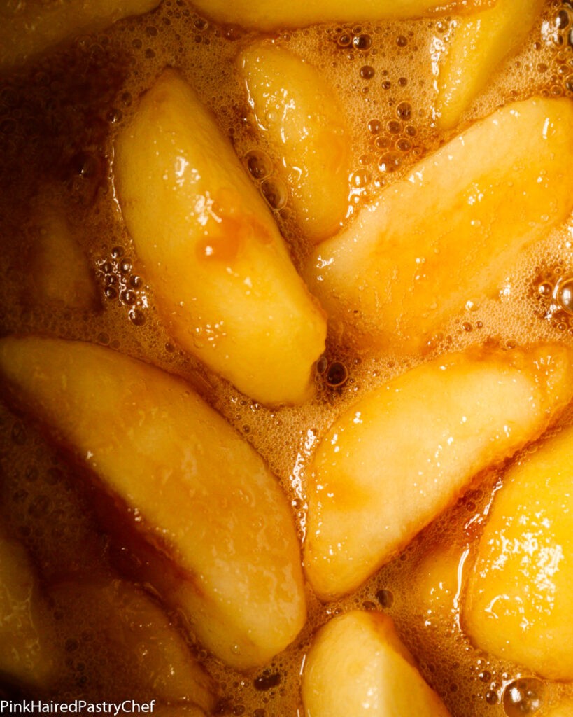It’s important when making this recipe to cut the apples thick enough that they don’t disintegrate when cooking. It’s equally important to not stir the apples too harshly when combining with the caramel.
